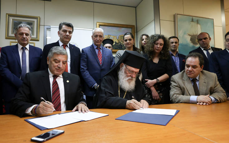 Ο Αρχιεπίσκοπος Αθηνών και πάσης Ελλάδος κ.κ. Ιερώνυμος και ο Περιφερειάρχης Αττικής Γ. υπέγραψαν σήμερα Σύμφωνο Συνεργασίας μεταξύ της Περιφέρειας Αττικής και του Φιλανθρωπικού Οργανισμού «Αποστολή» της Ιεράς Αρχιεπισκοπής Αθηνών.