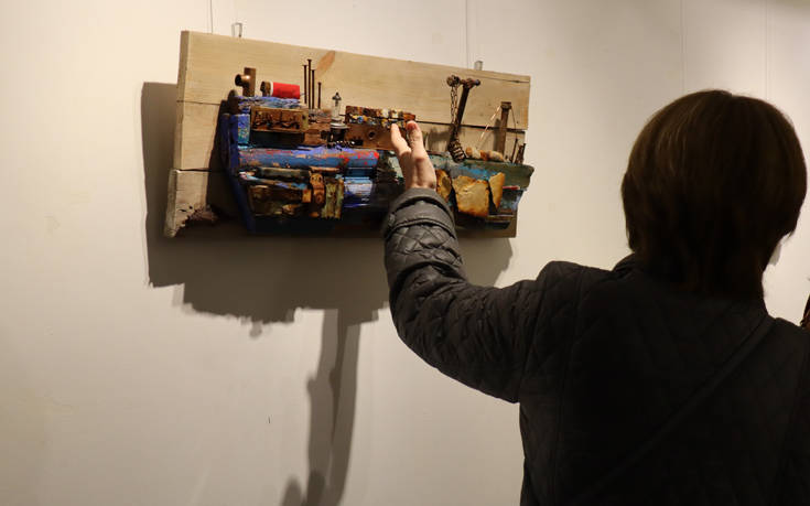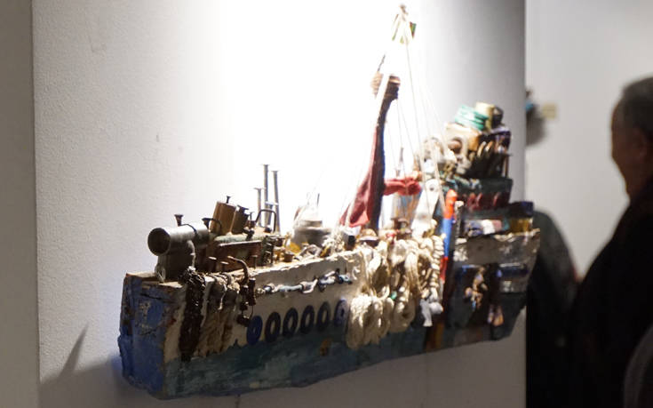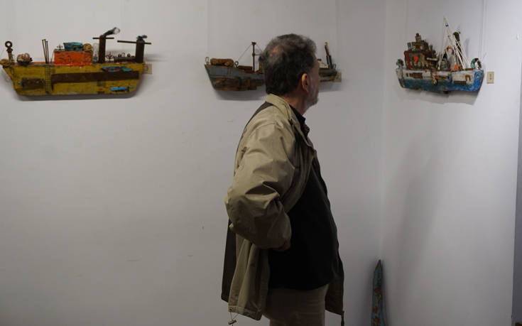 Μέσα από την εικαστική ματιά του καλλιτέχνη το κοινό μπορεί να θαυμάσει συνθέσεις και δημιουργίες με αντικείμενα και θαλασσοδαρμένα υλικά. Μαζεμένα σπαράγματα από καρνάγια και θάλασσες, σκουριά, αλμύρα παλιά ξύλα, καρφιά, σχοινιά, δίχτυα, καραβόπανα έρχονται από το χτες που κάποτε συντρόφευαν ψαράδες και ναυτικούς μέσα στη θάλασσα, ξαναγεννιούνται, παίρνουν μορφή και ψυχή για να ταξιδεύσουν στο σήμερα, μαζί με τα δικά μας όνειρα, τις δικές μας ελπίδες, στα μακρινά ταξίδια του μυαλού.