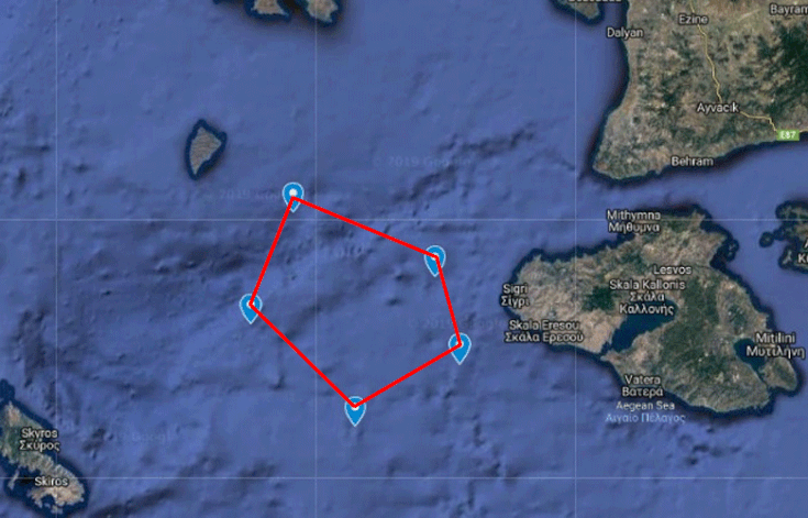 Η Άγκυρα προχώρησε όμως και σε πρόκληση στην θάλασσα, όταν το μεσημέρι δέσμευσε παράτυπα περιοχή στα διεθνή ύδατα μεταξύ Λέσβου, Άη Στράτη και Σκύρου για άσκηση του πολεμικού της ναυτικού. Το τουρκικό πολεμικό ναυτικό έστειλε μια πυραυλάκατο για άσκηση στη θαλάσσια περιοχή που είχε δεσμεύσει όμως ελληνικό πολεμικό πλοίο το παρακολουθούσε καθόλη την διάρκεια του πλου του.