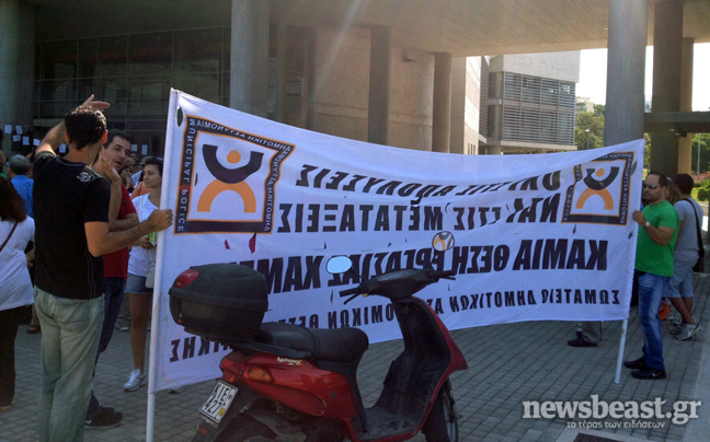 Μικροένταση επικράτησε πριν λίγο έξω από το δημαρχείο της Θεσσαλονίκης όπου έχουν κατασκηνώσει σχολικοί φύλακες, εργαζόμενοι στους ΟΤΑ και δημοτικοί αστυνομικοί διαμαρτυρόμενοι για την κινητικότητα, τη διαθεσιμότητα και τις συγχωνεύσεις.