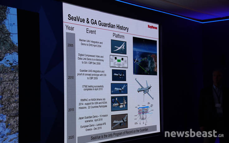 Η επίδειξη έγινε προς του εκπροσώπους του Τύπου από ένα MQ-9 Ναυτικής Συνεργασίας που κατασκευάζει η General Atomics Aeronautical Systems.