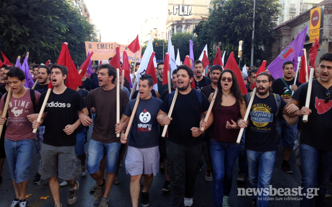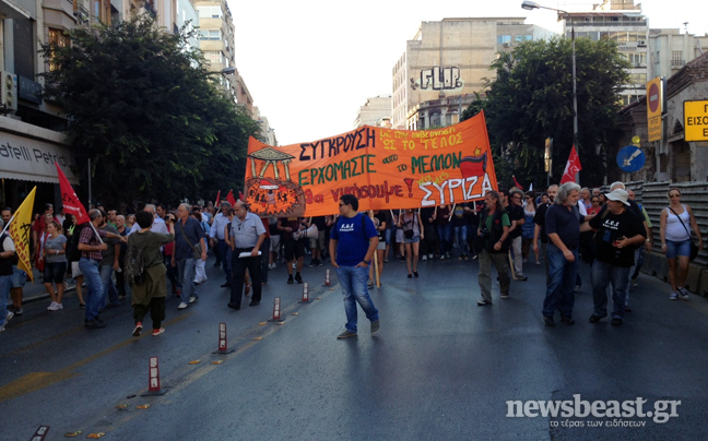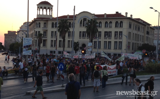 Χιλιάδες άτομα διαδήλωσαν σε ήρεμη ατμόσφαιρα στο κέντρο της Θεσσαλονίκης, στο πλαίσιο των εγκαινίων της 78ης Διεθνούς Έκθεσης Θεσσαλονίκης.