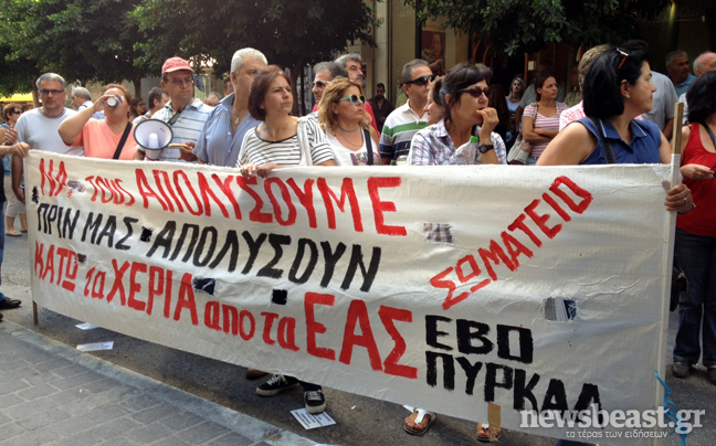 Πορεία διαμαρτυρίας προς το υπουργείο Οικονομικών πραγματοποιούν αυτήν την ώρα οι εργαζόμενοι στα Ελληνικά Αμυντικά Συστήματα (ΕΒΟ – ΠΥΡΚΑΛ) με αποτέλεσμα η κίνηση στην οδό Σταδίου να διεξάγεται μετ’ εμποδίων.