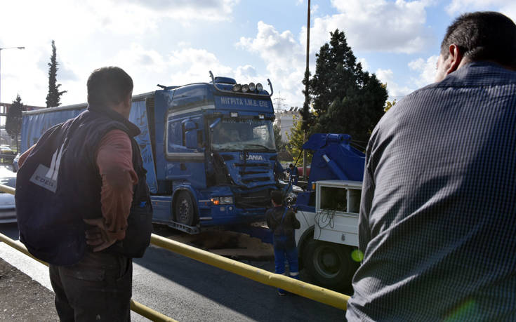 Το ένα φορτηγό μάλιστα ήταν ακινητοποιημένο, δεν μπορούσε να μετακινηθεί και χρειάστηκε να φτάσει γερανός και να το μεταφέρει από το σημείο.