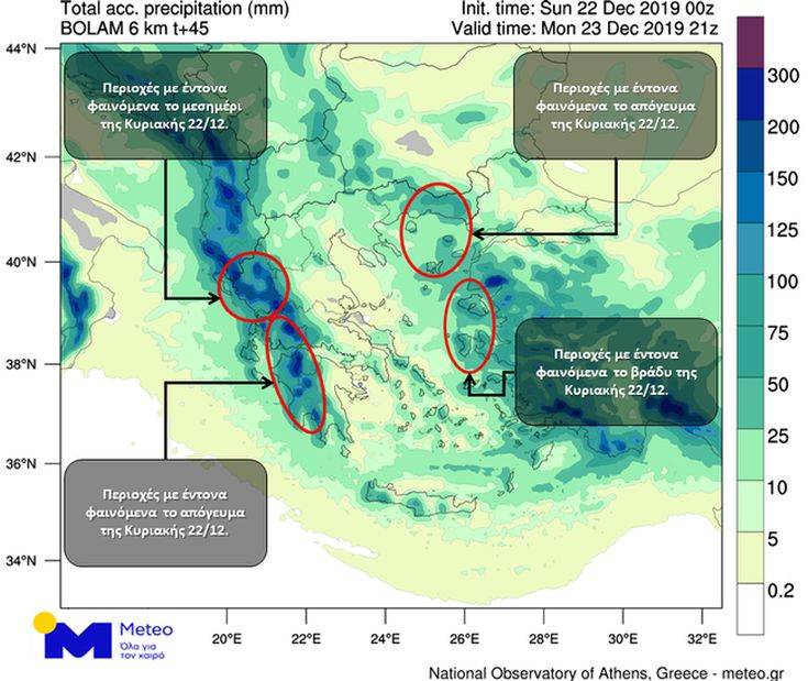 Σύμφωνα με το δίκτυο αυτόματων μετεωρολογικών σταθμών του Εθνικού Αστεροσκοπείου Αθηνών/meteo.gr, τα μεγαλύτερα ύψη βροχής έως τις 19:00 της Κυριακής, κατεγράφησαν στην Ήπειρο.