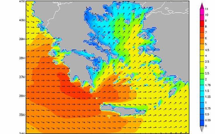 Παράλληλα, ιδιαίτερα ενισχυμένοι θα πνέουν οι νοτιοδυτικοί άνεμοι στα πελάγη με εντάσεις όπου θα φτάνουν τα 8 μποφόρ και τοπικά στο Αιγαίο τα 9 μποφόρ, ενώ στο Ιόνιο θα πνέουν σχεδόν θυελλώδεις έως θυελλώδεις 7-8 μποφόρ, όπου βαθμιαία θα στραφούν σε δυτικούς τοπικά έως πολύ θυελλώδεις 9 μποφόρ.