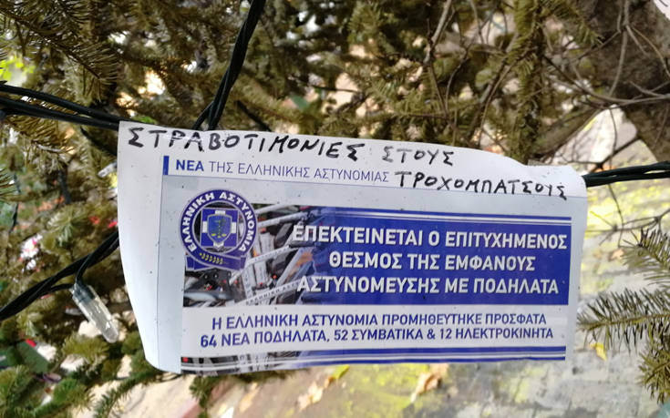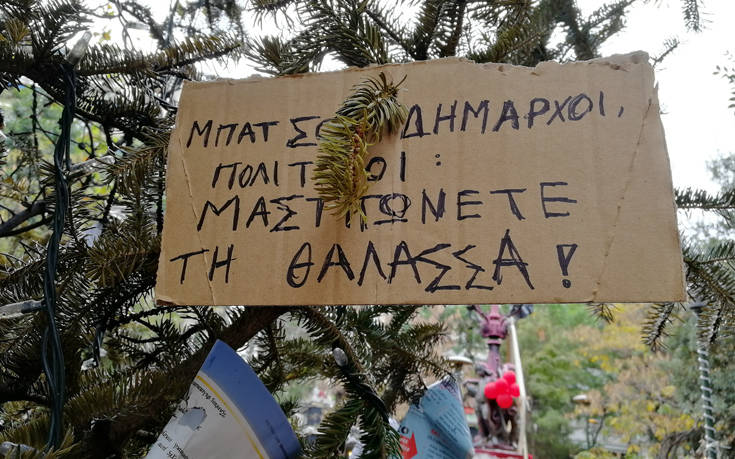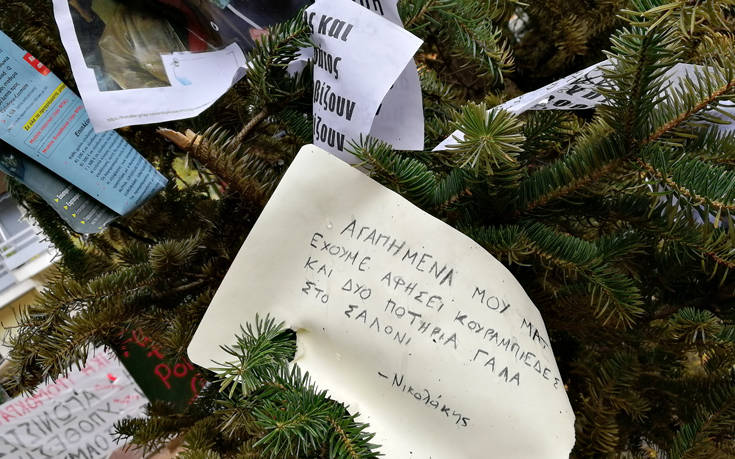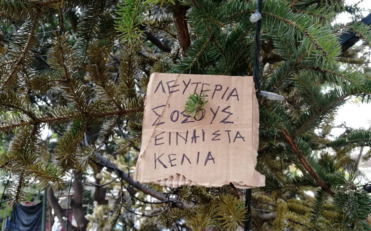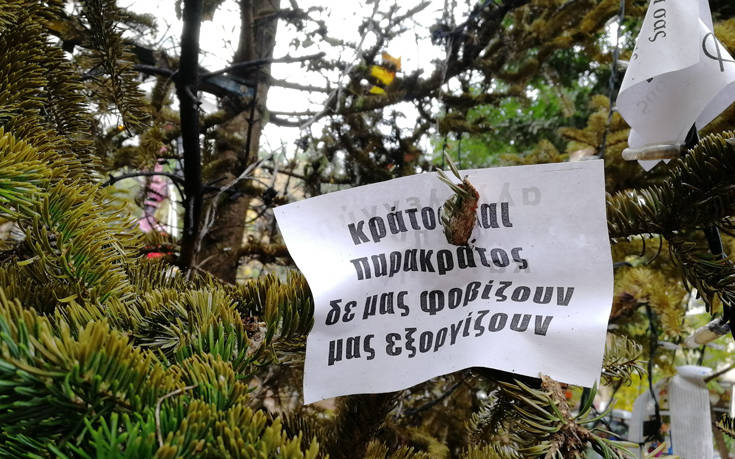 Την ίδια τύχη είχαν και τα δύο χριστουγεννιάτικα δέντρα που έβαλε ο δήμος Αθηναίων στην πλατεία Εξαρχείων.