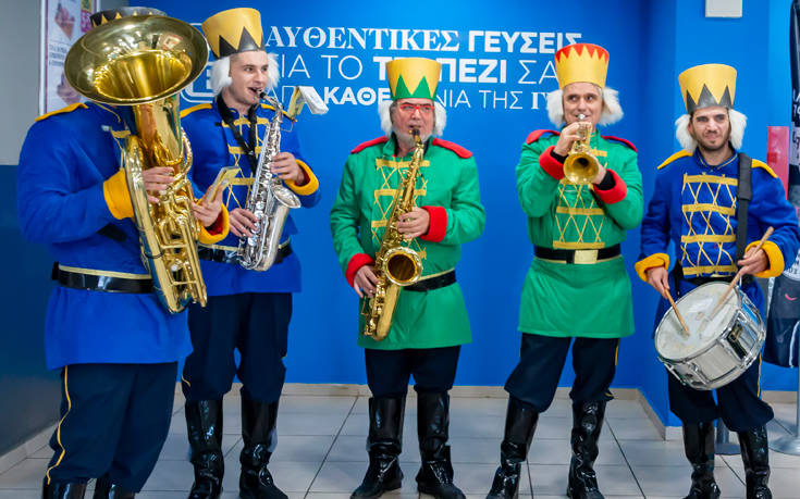Η «Μπάντα με τους Μολυβένιους Στρατιώτες» υποδέχθηκε τους πελάτες σε Καλαμάτα και Πάτρα, με γνωστά εορταστικά τραγούδια και με τα δημοφιλή κάλαντα των Χριστουγέννων και της Πρωτοχρονιάς.