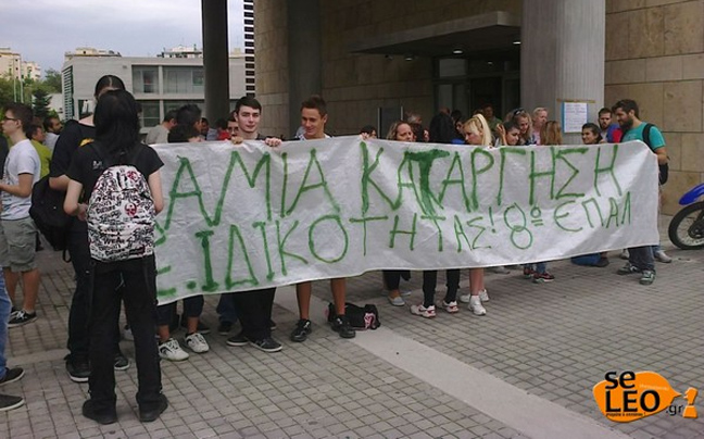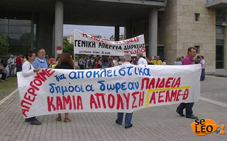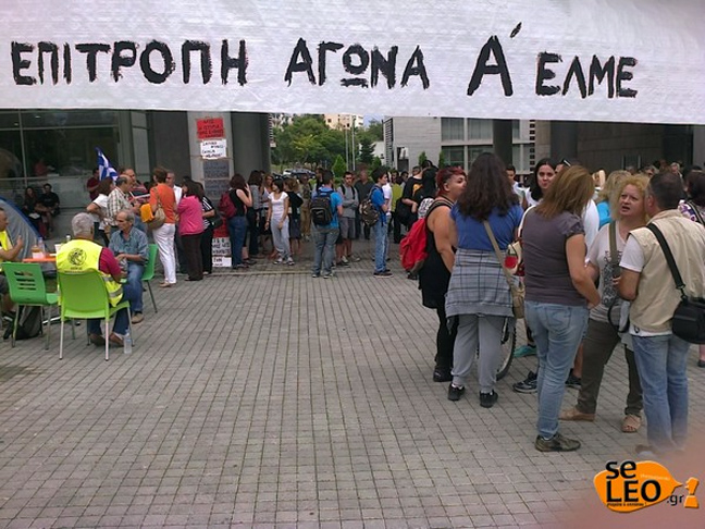 Καθηγητές της Α’ ΕΛΜΕ Θεσσαλονίκης καθώς και οι μαθητές τους που βρίσκονται εκεί για να τους συμπαρασταθούν και να διαμαρτυρηθούν για τη διάλυση στο χώρο της εκπαίδευσης, έχουν συγκεντρωθεί έξω από το δημαρχείο της συμπρωτεύουσας.