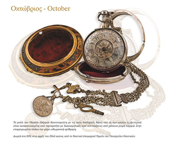 Τα ρολόγια που παρουσιάζονται στο Ημερολόγιο 2020 σε 152 σελίδες μαζί με τις προσωπογραφίες, τις βιογραφίες και τις υπογραφές των κατόχων τους, είναι κατασκευασμένα από σημαντικούς οίκους ωρολογοποιίας αγγλικής, γαλλικής, ελβετικής και αυστριακής προέλευσης. Φέρουν το καθένα τη σφραγίδα των τεχνολογικών επιτευγμάτων της εποχής τους, προβάλλοντας τις αισθητικές αξίες και τις κοινωνικές σχέσεις του κατόχου τους. Κάποια από αυτά προσφέρθηκαν ως πολύτιμα διπλωματικά δώρα σε σημαίνουσες προσωπικότητες του Αγώνα.