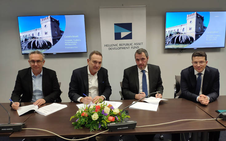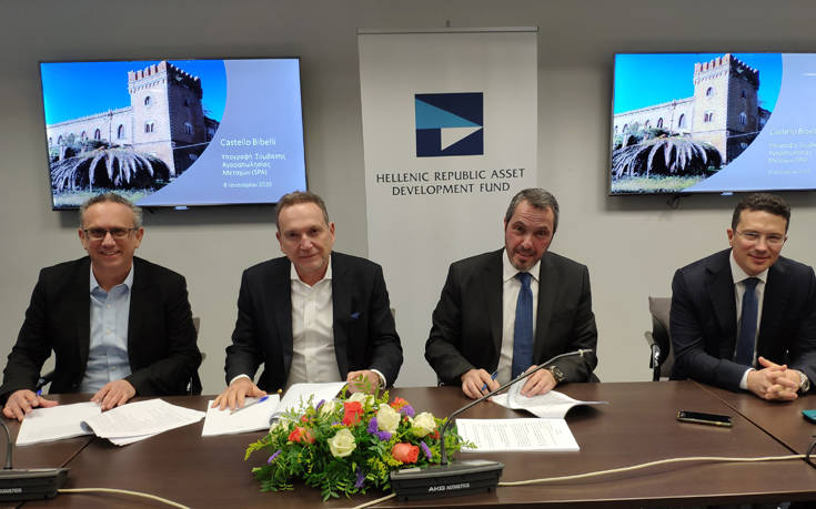 Ο Εκτελεστικός Πρόεδρος του ΤΑΙΠΕΔ, κ. Άρης Ξενόφος και οι κ.κ. Σάμ Φάις, Πρόεδρος & Διευθύνων Σύμβουλος και Χαράλαμπος Πανδής, Αντιπρόεδρος της Castello Bibelli AE υπέγραψαν σήμερα τη Σύμβαση Αγοροπωλησίας Μετοχών (SPA). Παράλληλα, επήλθε και το οικονομικό κλείσιμο της συναλλαγής, με την καταβολή της πρώτης δόσης, ύψους 1,550 εκατ. ευρώ από το συνολικό οικονομικό τίμημα των 4.111.505 ευρώ.