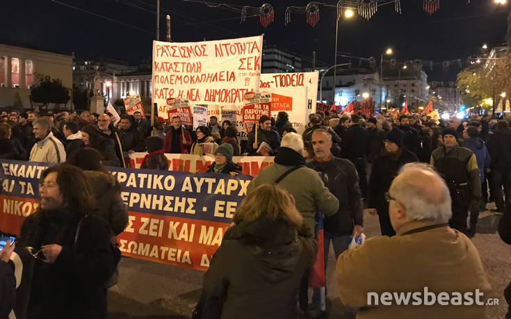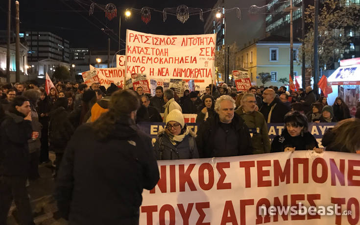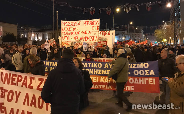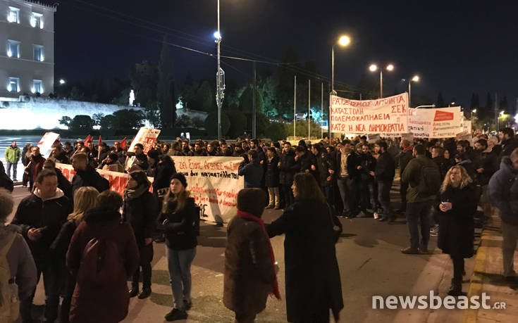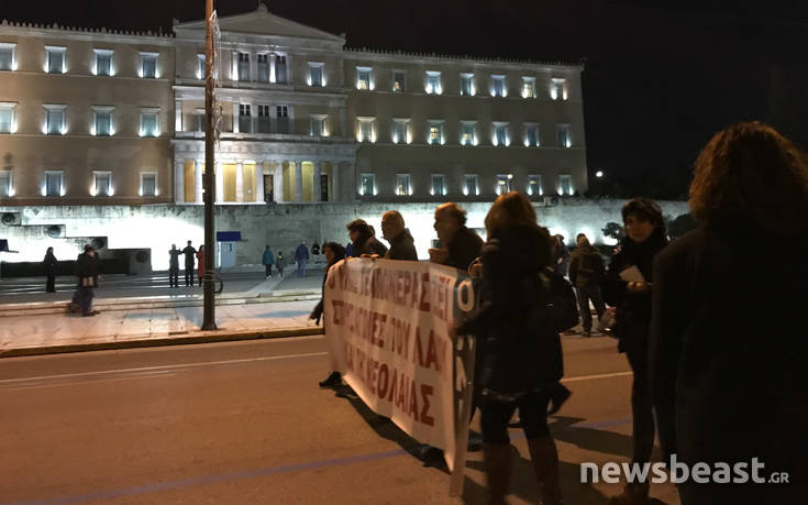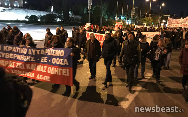 Οι συμμετέχοντες στη συγκέντρωση πραγματοποίησαν στη συνέχεια πορεία στους δρόμους του κέντρου της πόλης η οποία λίγα λεπτά πριν τις 20.00 έφτασε στη Βουλή.