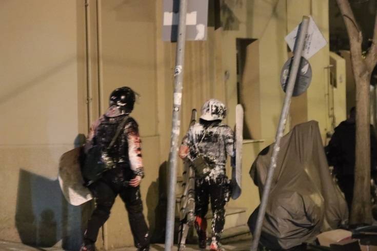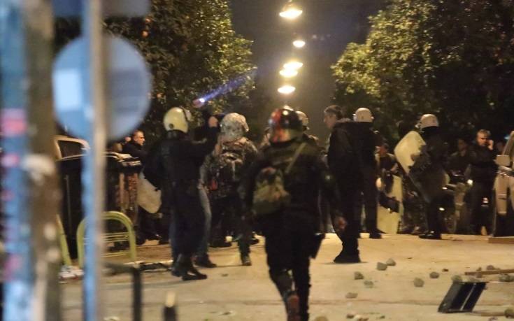 Η αστυνομία επιχειρεί να μπει στο υπό κατάληψη κτίριο που βρίσκεται στην οδό Μαντρόζου στο Κουκάκι, με τους αντιεξουσιαστές να τους πετάνε πέτρες από τα παράθυρα.