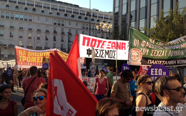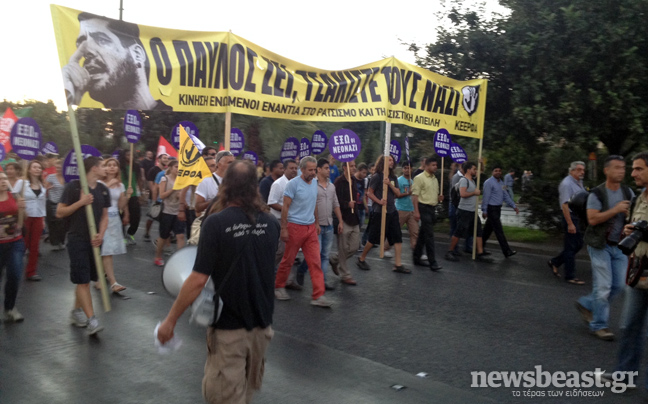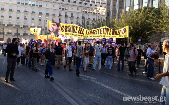 Χιλιάδες κόσμου συμμετείχαν στη σημερινή αντιφασιστική συγκέντρωση στο Σύνταγμα μια εβδομάδα μετά τη δολοφονία του Παύλου Φύσσα στο Κερατσίνι. Το συλλαλητήριο διοργάνωσαν η ΓΣΕΕ, η ΑΔΕΔΥ, πολιτικά κόμματα και κοινωνικοί φορείς.