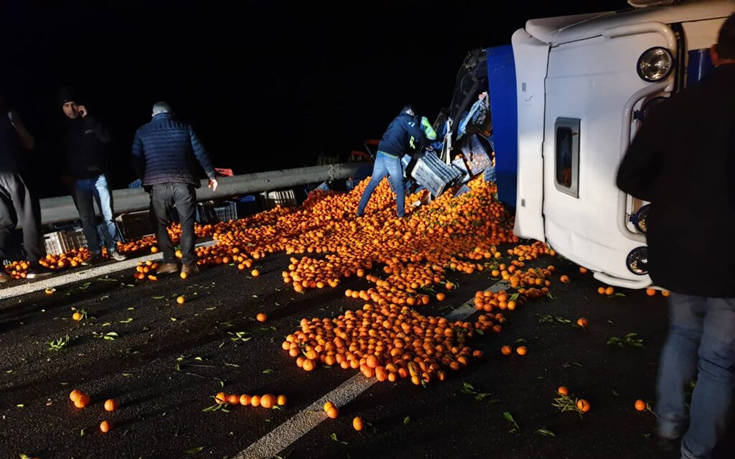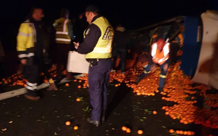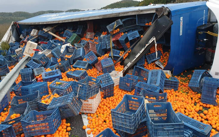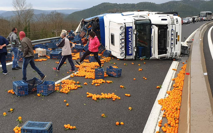 Για άγνωστο μέχρι στιγμής λόγο ο οδηγός της νταλίκας έχασε τον έλεγχο του οχήματος, χτύπησε στο στηθαίο, με αποτέλεσμα η νταλίκα να διπλώσει και να ντελαπάρει, κλείνοντας τον αυτοκινητόδρομο, ενώ τόνοι πορτοκαλιών σκορπίστηκαν στο δρόμο.