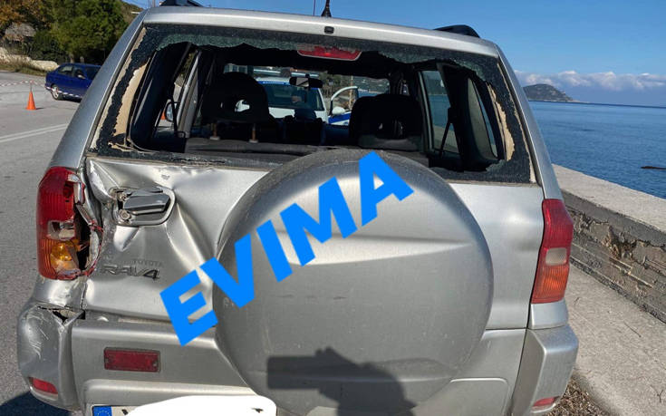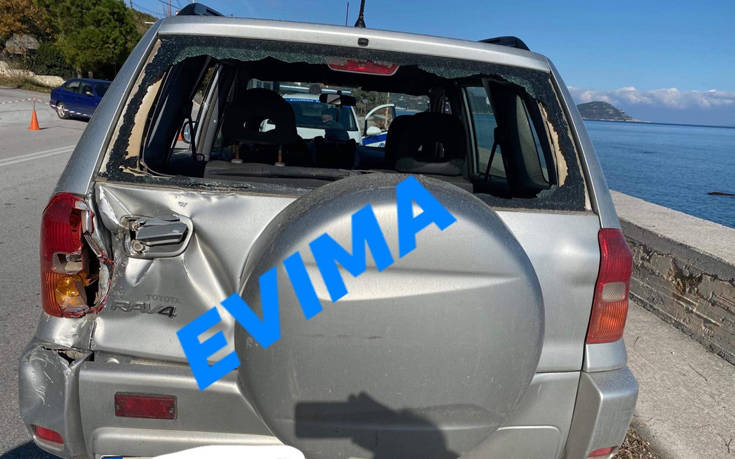 Ένας βράχος έπεσε πάνω σε αυτοκίνητο αστυνομικών που κινείτο το πρωί της Τρίτης 14 Ιανουαρίου, στον παραλιακό δρόμο προς Κύμη, με αποτέλεσμα να τραυματιστεί ένας αστυνομικός.