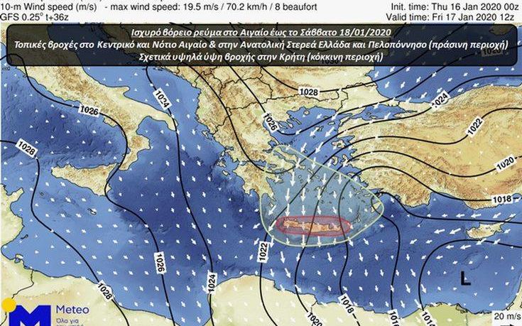 Οι ισχυροί βόρειοι άνεμοι στο Αιγαίο θα διατηρηθούν έως το Σάββατο, εξαιτίας της επικράτησης χαμηλών πιέσεων στην Ανατολική Μεσόγειο, σε συνδυασμό με τις σχετικά υψηλές πιέσεις στα Βαλκάνια, που θα διατηρήσει το ενισχυμένο βόρειο ρεύμα, σύμφωνα με το meteo του Εθνικού Αστεροσκοπείου Αθηνών.