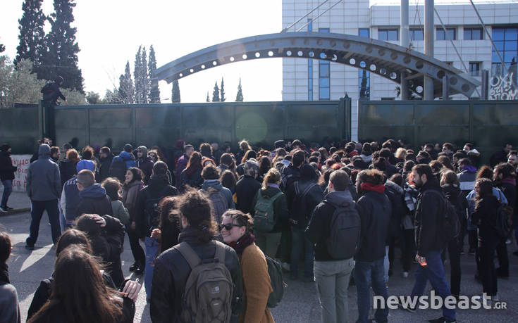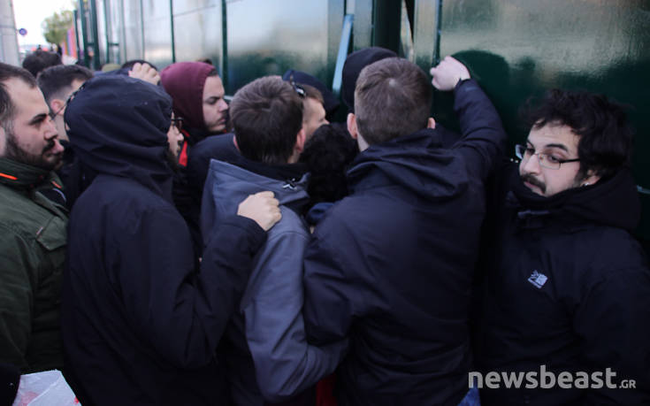 Πριν λίγο οι φοιτητές επιχείρησαν να μπουν στο υπουργείο Παιδείας από μικρό άνοιγμα στην πύλη, και όταν επιχειρήθηκε να κλείσει φώναζαν «θέλετε νεκρό στην πόρτα του υπουργείου;», ενώ στη συνέχεια ορισμένοι ανέβηκαν πάνω στις συρόμενες πόρτες.
