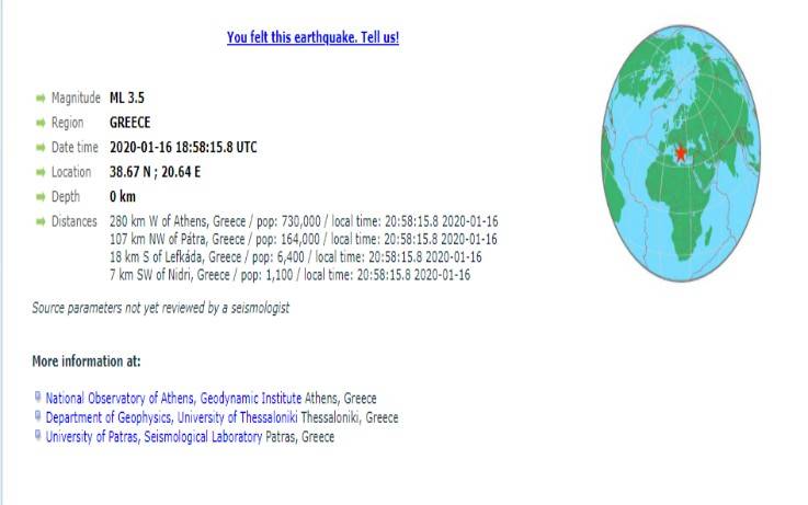 Σεισμός ταρακούνησε πριν από λίγο το Ιόνιο καθώς έγινε αισθητή δόνηση με επίκεντρο νότια της Λευκάδας.