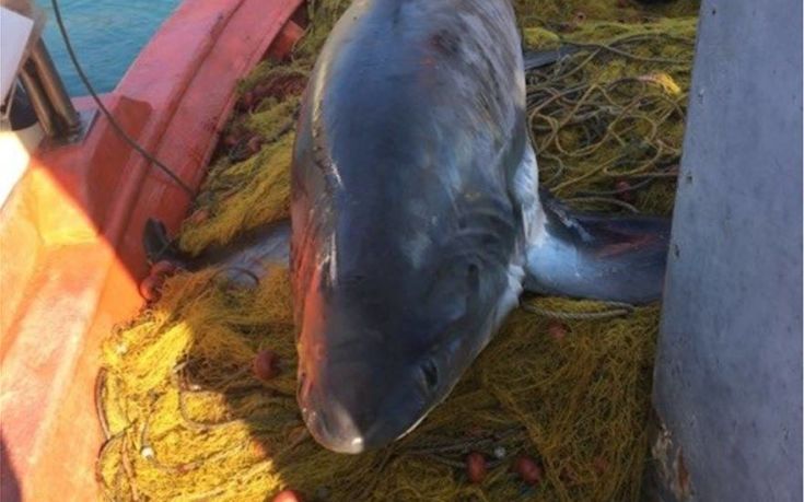 Ένας καρχαρίας αλεπού, μήκους 4 μέτρων και βάρους 100 κιλών, αλιεύτηκε το πρωί στον Παγασητικό.