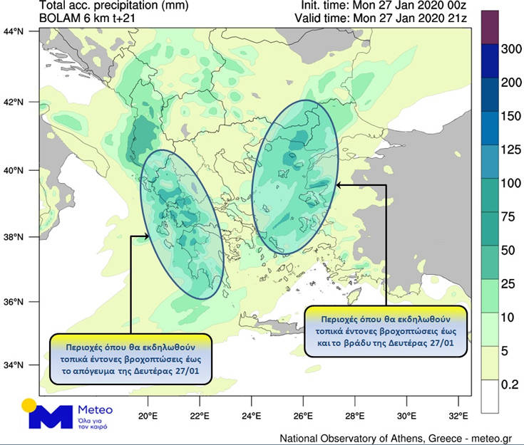 Σποραδικές καταιγίδες θα εκδηλωθούν κυρίως στα δυτικά και στα νότια τμήματα της χώρας, στο Αιγαίο και πιθανώς στη Θράκη, ενώ χιόνια θα πέσουν στα κεντρικά και βόρεια ορεινά σε μεγάλα υψόμετρα.