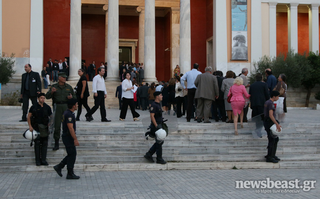 Εκκενώνεται η πλατείαςμποστά από το Αρχαιολογικό Μουσείο στην Πατησίων. Στο σημείο ήταν συγκεντρωμένοι απολυμένοι διοικητικοί υπάλληλοι και καθηγητές και διαμαρτύρονταν για τη διαθεσιμότητα. Στο Μουσείο αναμένεται να φτάσει ο πρωθυπουργός Αντώνης Σαμαράς για τα εγκαίνια μιας καινούριας έκθεσης.