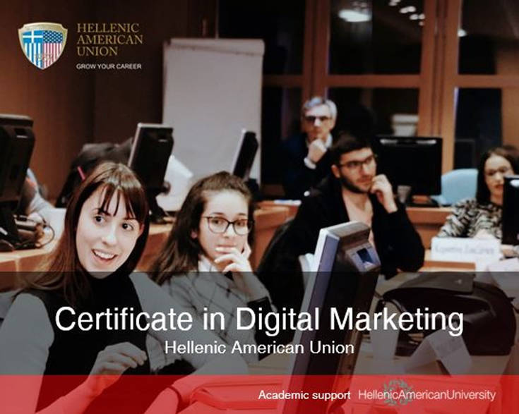 Εάν θέλεις να ασχοληθλείς επαγγελματικά με το digital marketing, αν είσαι επιχειρηματίας και θέλεις να προωθήσεις δυναμικά την επιχείρησή σου σε online κανάλια, το εκπαιδευτικό πρόγραμμα Certificate in Digital Marketing της Ελληνοαμερικανικής Ένωσης θα σου δώσει τις βασικές γνώσεις που χρειάζεσαι για να σχεδιάζεις και να εκτελείς μια στρατηγική digital marketing.