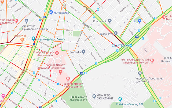 Στο σημείο αναμένεται γερανός, ενώ η κίνηση στην Κατεχάκη διεξάγεται στη μια λωρίδα, με αποτέλεσμα να υπάρχει μποτιλιάρισμα.