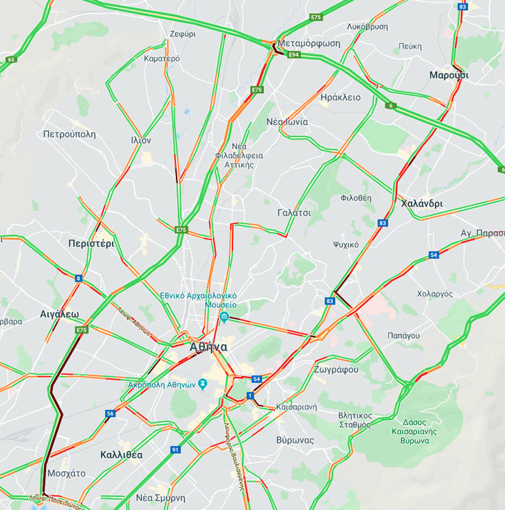 Επίσης, έντονη κίνηση παρατηρείται σε άλλες κεντρικές αρτηρίες του λεκανοπεδίου, ιδιαίτερα στο κέντρο της Αθήνας και μεταξύ Χαλανδρίου και Αμαρουσίου, αλλά και στη Μεσογείων σε κάποια της κομμάτια.