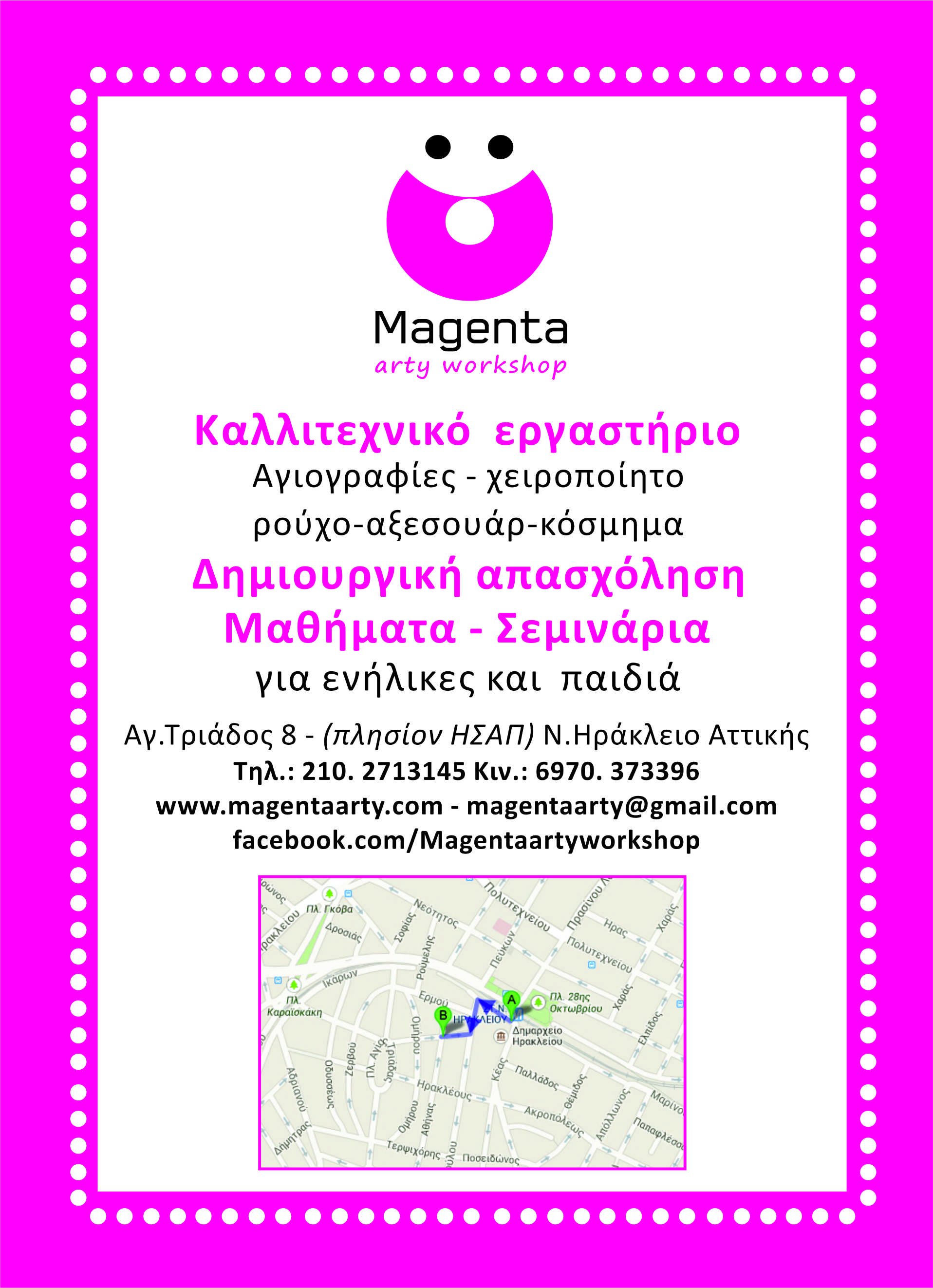 Στη Magenta arty workshop θα μάθετε και θα καλλιεργήσετε το ταλέντο μας σε: