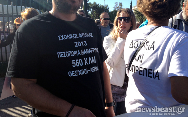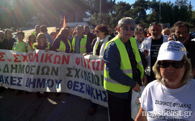 Οι σχολικοί φύλακες έφτασαν στην Αθήνα με πεζοπορία από τη Θεσσαλονίκη και τώρα κατευθύνονται στο Σύνταγμα προκειμένου να διαδηλώσουν εναντίον του μέτρου της κινητικότητας και της διαθεσιμότητας που τους… πετάει έξω από την αγορά εργασίας.