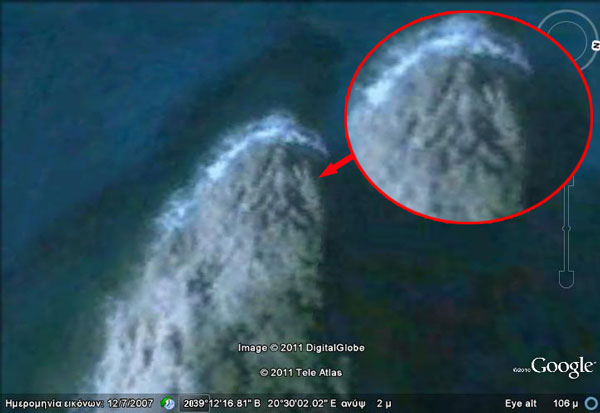 Η φωτογραφία αυτή τραβηγμένη από δορυφόρο το 2007 παριστάνει μια γονατιστή γυναίκα που κρατά στο χέρι της έναν αμφορέα.