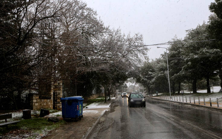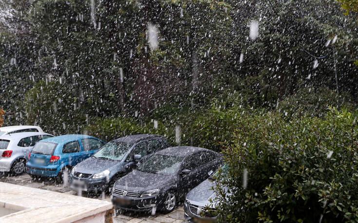 Το πρώτο κύμα κακοκαιρίας έπληξε το πρωί την Αττική, ντύνοντας στα λευκά την Πάρνηθα, την Πεντέλη, την Εκάλη, τον Άγιο Στέφανο, την Ιπποκράτειο Πολιτεία και τον Υμηττό.