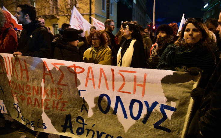 «Με το δίκιο στο πλευρό μας, οργανώνουμε τον αγώνα για δημόσια και δωρεάν κοινωνική ασφάλιση, στις 18 Φλεβάρη απεργούμε» ειπώθηκε στην κεντρική ομιλία του συλλαλητηρίου.