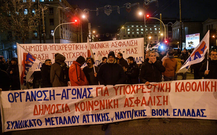 Σε εξέλιξη βρίσκεται πορεία εργατικών κέντρων, ομοσπονδιών και συνδικάτων στο κέντρο της Αθήνας, με αιτήματα-συνθήματα «να αποσυρθεί τώρα ο νόμος-λαιμητόμος Κατρούγκαλου-Βρούτση, κάτω τα χέρια από την κοινωνική ασφάλιση, αποκλειστικά δημόσια, υποχρεωτική για όλους».