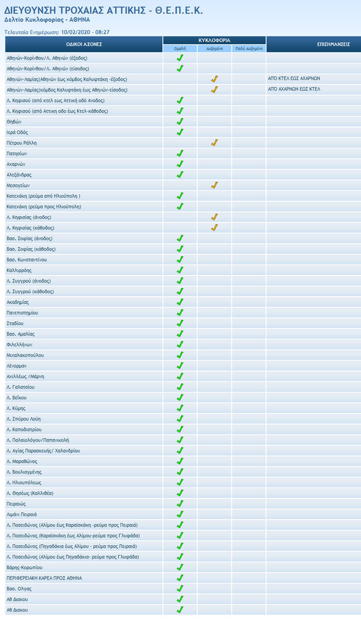 Σύμφωνα με την Τροχαία, με χαμηλές ταχύτητες διεξάγεται η κυκλοφορία στα εξής σημεία: