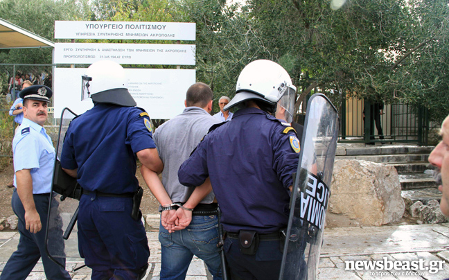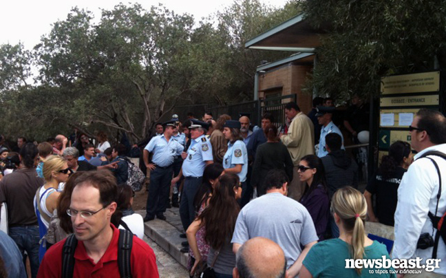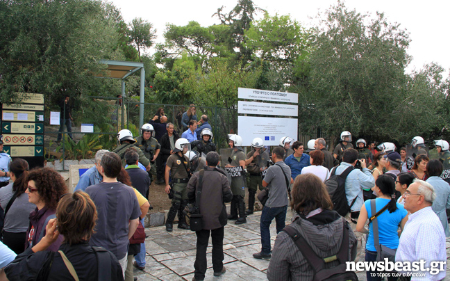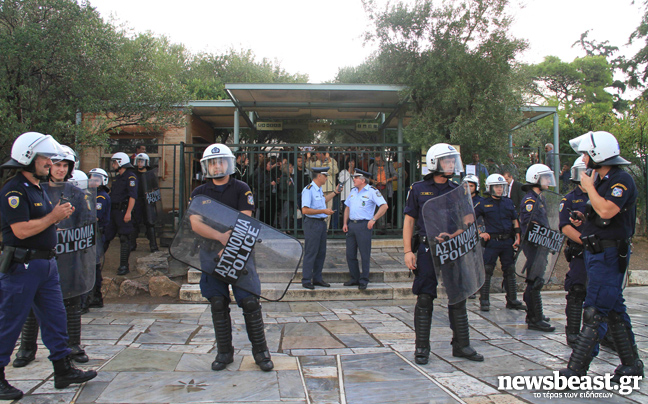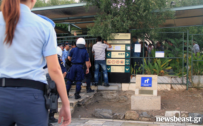 Η είσοδος του αρχαιολογικού χώρου είναι ακόμα αποκλεισμένη από αστυνομικές δυνάμεις, μετά την επιχείρηση με την οποία απομακρύνθηκαν από το σημείο οι καταληψίες. Προηγήθηκαν επεισόδια όταν δυνάμεις των ΜΑΤ και της Υπηρεσίας Μέτρων Τάξης έκαναν έφοδο εισβάλλοντας στον αρχαιολογικό χώρο από την πλαϊνή είσοδο, ενώ απ’ έξω έκαναν χρήση δακρυγόνων. Ένας εργαζόμενος οδηγήθηκε με χειροπέδες στην κλούβα των ΜΑΤ που ήταν σταθμευμένη κοντά στην είσοδο. Σύμφωνα με τις πληροφορίες, έγινε εξακρίβωση των στοιχείων του και στη συνέχεια αφέθηκε ελεύθερος.