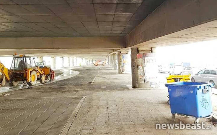 Εντελώς διαφορετική εικόνα από τη συνηθισμένοι αντικρίζουν οι οδηγοί που διέρχονται πλέον από τη γέφυρα της Πέτρου Ράλλη και Κηφισού. Εκεί που αντίκριζες κομματιασμένα στρώματα, ακαθαρσίες, μπάζα σκουπίδια, σπασμένους σωλήνες, ξεχαρβαλωμένες καρέκλες, άχρηστα μπιτόνια, βρόμικα ρούχα και άχρηστους καναπέδες πλέον υπάρχουν καθαρές τσιμεντένιες πλάκες.