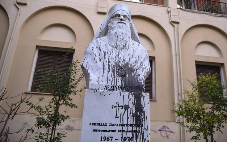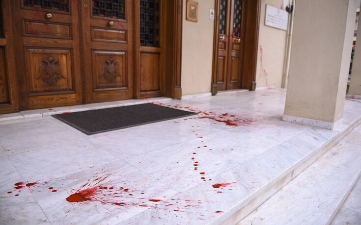 Άγνωστοι πέταξαν μπογιές και τρικάκια στο προαύλιο της Μητρόπολης Θεσσαλονίκης, στο ιστορικό κέντρο της πόλης.