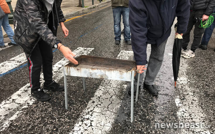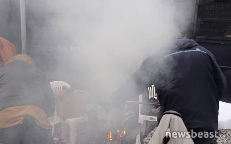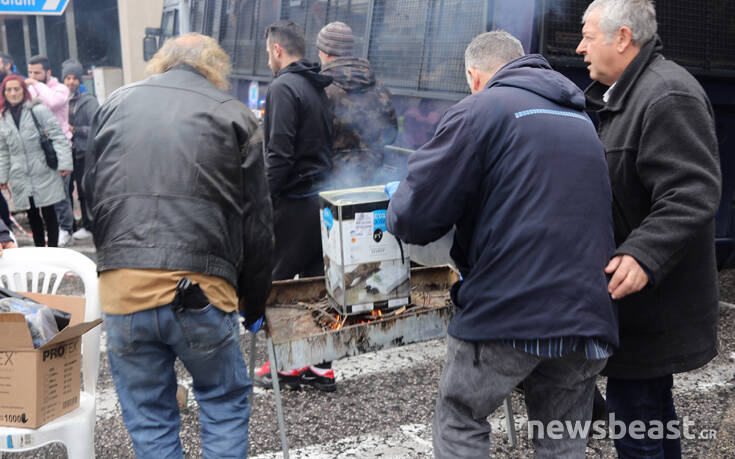 Ανήμερα λοιπόν της Τσικνοπέμπτης οι συγκεντρωμένοι έστησαν ψησταριές μπροστά από τις κλούβες της Αστυνομίας διαμαρτυρόμενοι για τις απολύσεις στο Δρομοκαΐτειο, ενώ κρατούν πανό που γράφει «Θα πούμε το ψωμί ψωμάκι».