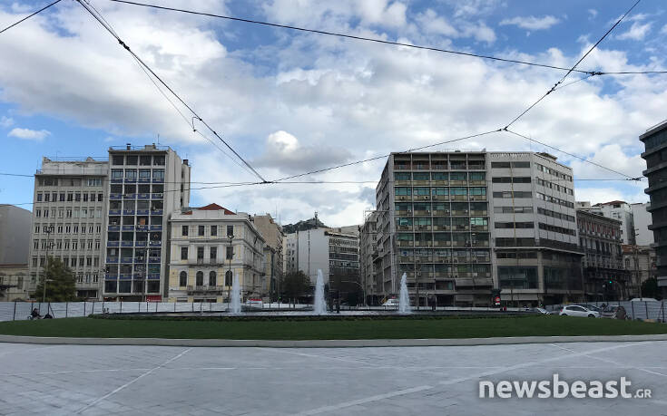 Η Ομόνοια αλλάζει και θυμίζει κάτι από παλιά… Πριν από λίγες μέρες μπήκε το γρασίδι στο συντριβάνι ενώ χθες το βράδυ γέμισε και με νερό.