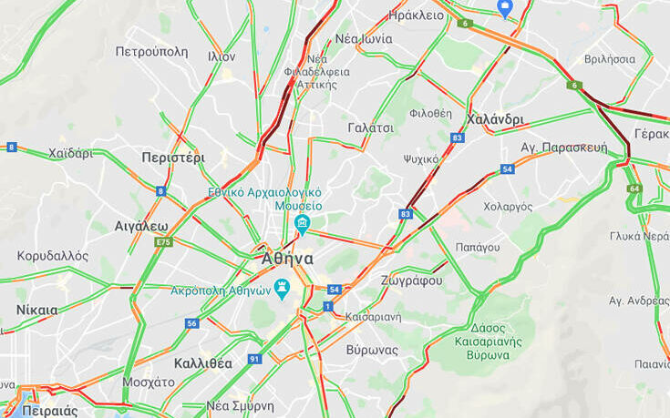 Με χαμηλές ταχύτητες κινούνται τα οχήματα στην άνοδο της Αλεξάνδρας, στη Μεσογείων στο ρεύμα προς Αθήνα, στα δύο ρεύματα της Κηφισίας, αλλά και στην άνοδο της Βασιλίσσης Σοφίας.