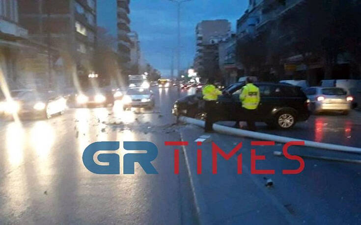 Για άγνωστο λόγο ο οδηγός του αυτοκινήτου έχασε τον έλεγχο με αποτέλεσμα να πέσει πάνω στην κολόνα, η οποία έπεσε στο έδαφος αναφέρει στο grtimes.gr.
