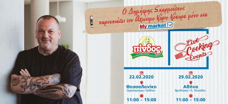 Ο Δημήτρης Σκαρμούτσος θα προσφέρει στους καταναλωτές των καταστημάτων My market τις πιο ιδιαίτερες συνταγές, με πρωταγωνιστή τον Αξιότιμο Κύριο Κόκορα ΠΙΝΔΟΣ, και θα μοιραστεί μαζί τους όλα τα tips για τη δημιουργία του τέλειου πιάτου!