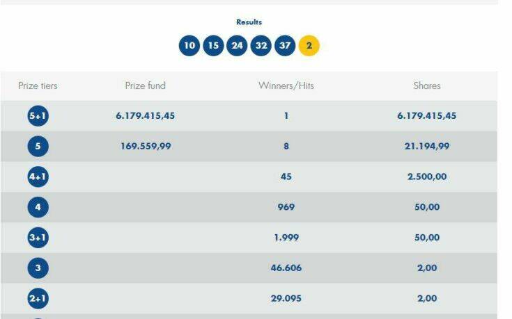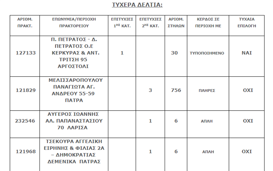 Επίσης, οχτώ επιτυχίες βρέθηκαν στην 2η κατηγορία οι οποίες κερδίζουν το ποσό των 21.194,99 ευρώ έκαστη.