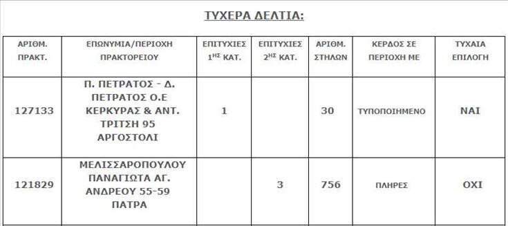 Ο τυχερός παίκτης, που πλέον είναι εκατομμυριούχος, ακόμη δεν έχει εμφανιστεί, σύμφωνα με τον κ. Πετράτο. Έπαιξε ένα δελτίο αξίας 15 ευρώ, ενώ η νικητήρια στήλη προήλθε από τυποποιημένο σύστημα.