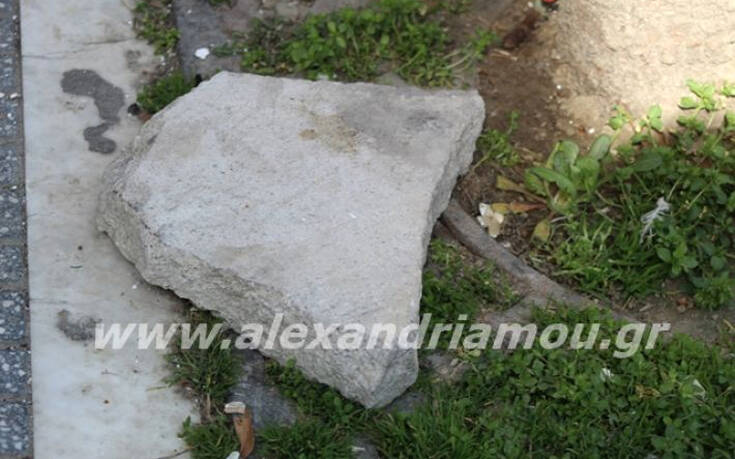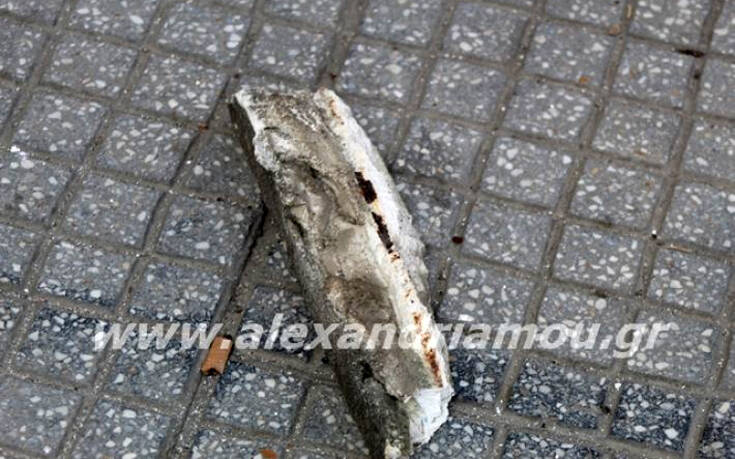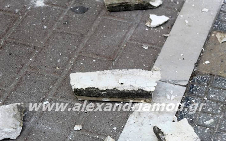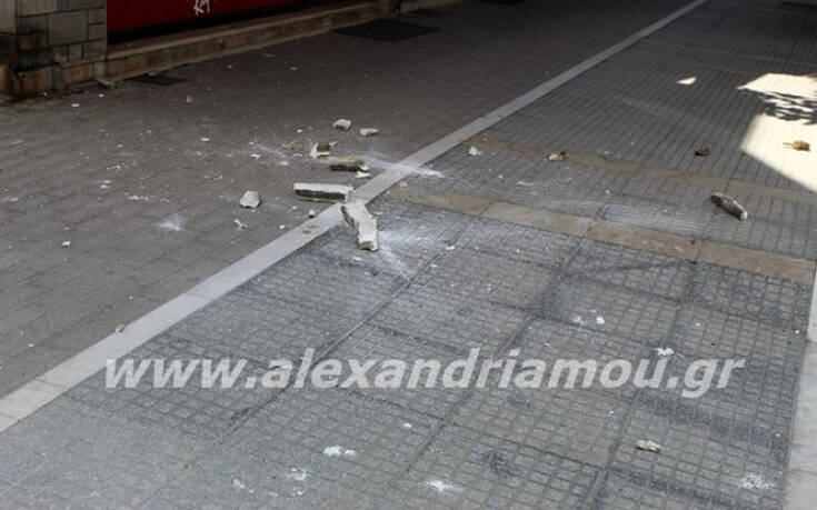 Αναστάτωση σημειώθηκε σήμερα το πρωί σε κεντρικό δρόμο της Αλεξάνδρειας. Σοβάδες έπεσαν από πολυκατοικία και τραυμάτισαν μια ηλικιωμένη γυναίκα που περπατούσε στο πεζοδρόμιο.