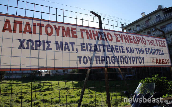 Στον χώρο έχει αναρτηθεί και πανό της ΑΔΕΔΥ.