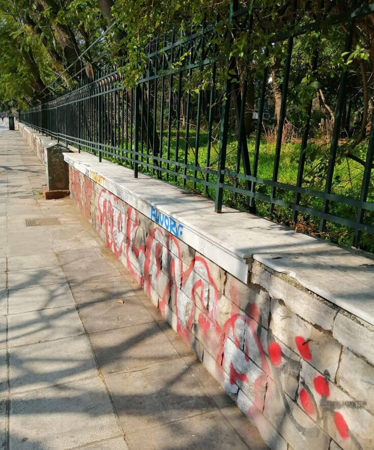 Ο τοίχος, που έχει ύψος περίπου ένα μέτρο, ήταν γεμάτος από γκράφιτι εδώ και πολλά χρόνια με αποτέλεσμα το εγχείρημα να είναι ιδιαίτερα δύσκολο. Κι’ αυτό γιατί τα χρώματα στις πέτρες είχαν «ποτίσει» σε βάθος με αποτέλεσμα να χρειαστεί το ειδικό αντιγκράφιτι υλικό να απλωθεί και να αφαιρεθεί διαδοχικά τρεις φορές μέχρι να καθαρίσει πλήρως ο τοίχος.