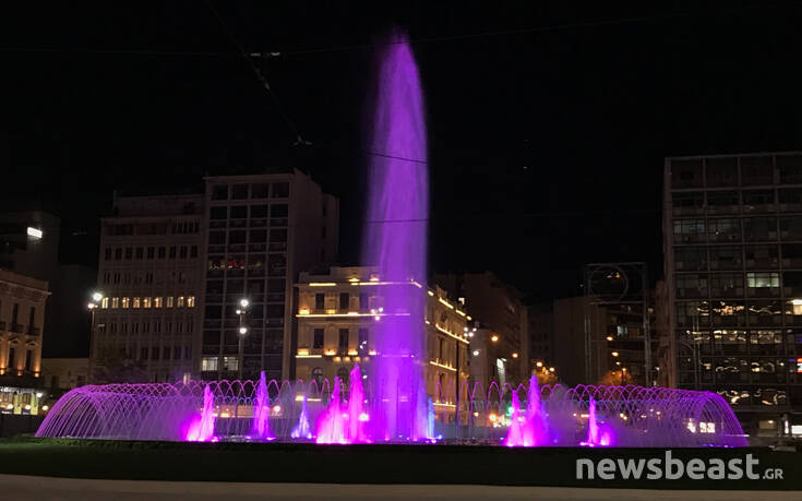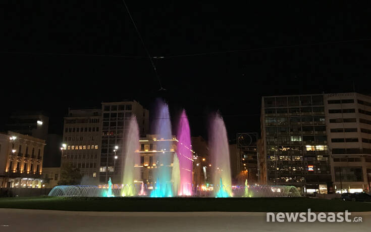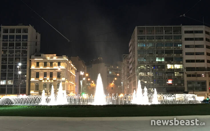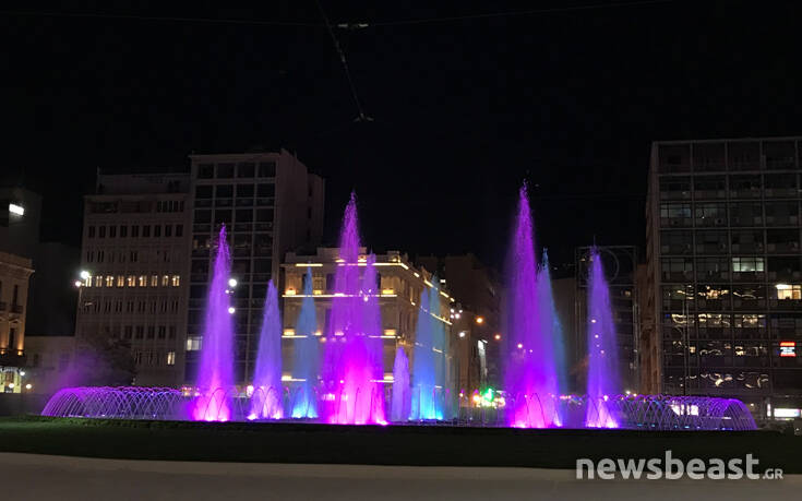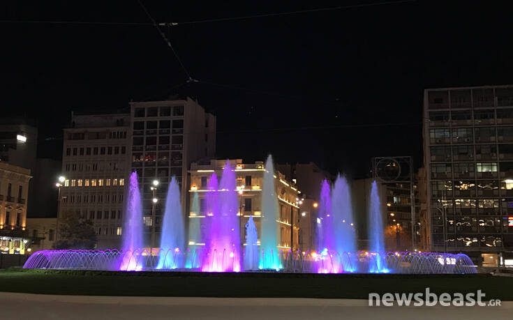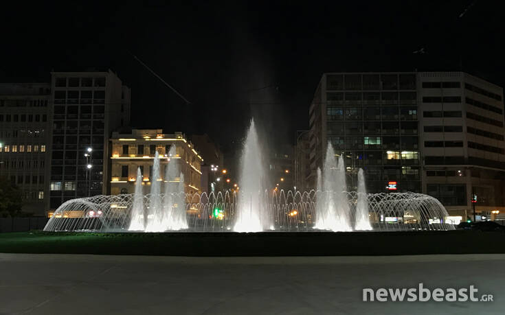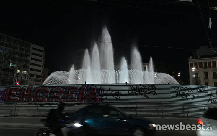 Οι άνθρωποι του δήμου συνεχίζουν τις δοκιμές και οι φωτογραφίες του newsbeast.gr από το βράδυ της Τρίτης (25/2) δείχνουν το συντριβάνι να βρίσκεται σε λειτουργία και να μαγεύει με την εναλλαγή των χρωμάτων του.